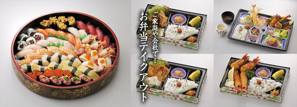 テイクアウト会席弁当、丼もの 事前ご予約後、当店にてお渡しが可能
