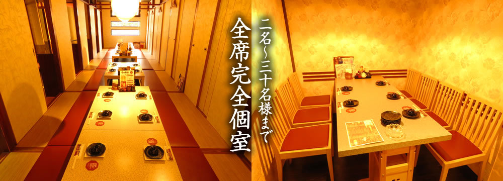【極】の部屋は全て完全個室!2〜110名までと幅広くご用意しております。